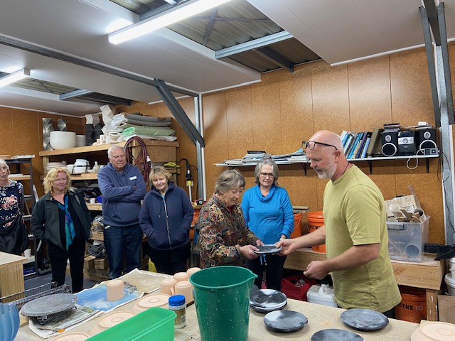 The fourth Thursday social this month had a vocational twist as a group of members and partners visited Mark Mitchell’s ceramic art gallery.